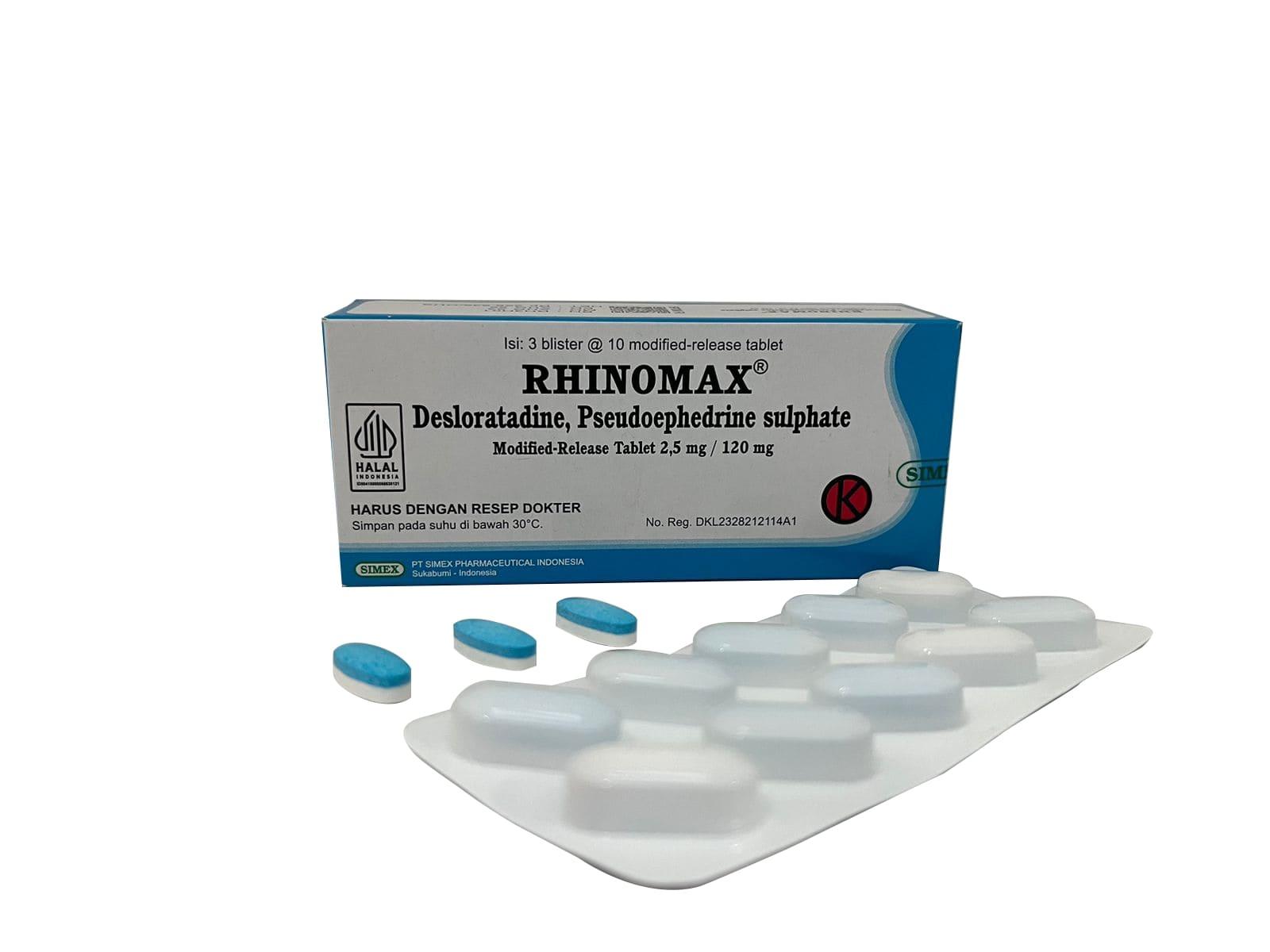RHINOMAX® is a solution for allergic rhinitis. RHINOMAX® is a combination of Pseudoephedrine Sulphate as decongestant and Desloratadine 2,5 mg as antihistamine. RHINOMAX® as modified release tablet has a unique properties like long acting therapy, fast onset, and no sedative effect. The modified release tablet in RHINOMAX® dosage form making the medicine has a long acting effect, so the patients can take RHINOMAX® in the morning or afternoon, and unlike the other antihistamine medicine, consumption RHINOMAX® will not make the patients sleepy.