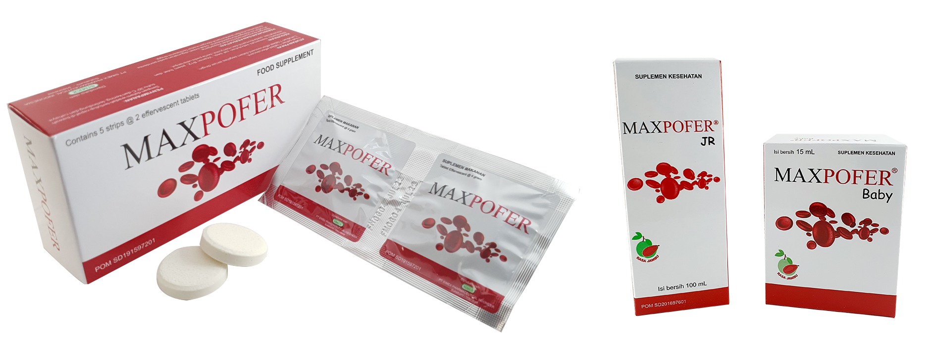 PT. SIMEX PHARMACEUTICAL INDONESIA as one of the pharmaceutical companies in Indonesia presents MAXPOFER products as an iron supplement. There are three different dosage forms, MAXPOFER Effervescent Tablet is for adult and pregnant women with fresh taste lemon flavor, MAXPOFER JR is for kids, and MAXPOFER BABY is for babies or toddlers with guava flavor. MAXPOFER as an iron supplement is using LIPOFER®, and LIPOFER® has advantages over common iron supplement because highly bioavailable in the blood.