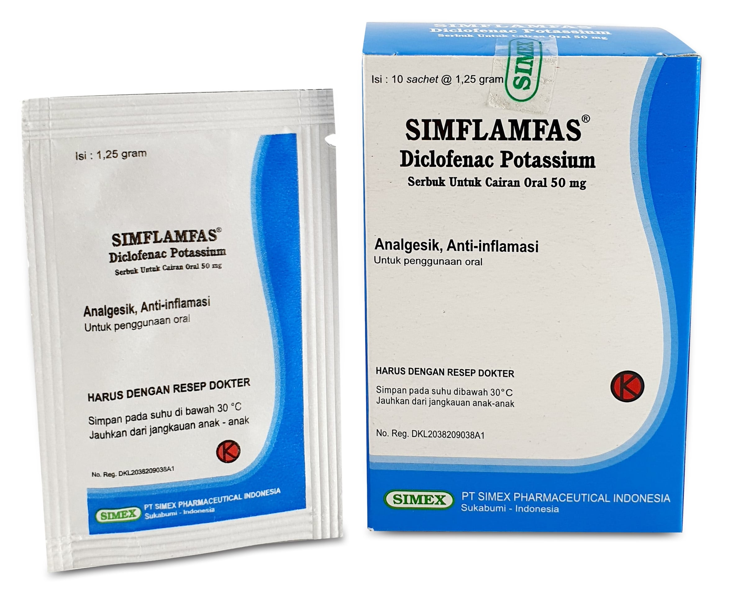 Each sachet contains Diclofenac Potassium 50 mg.