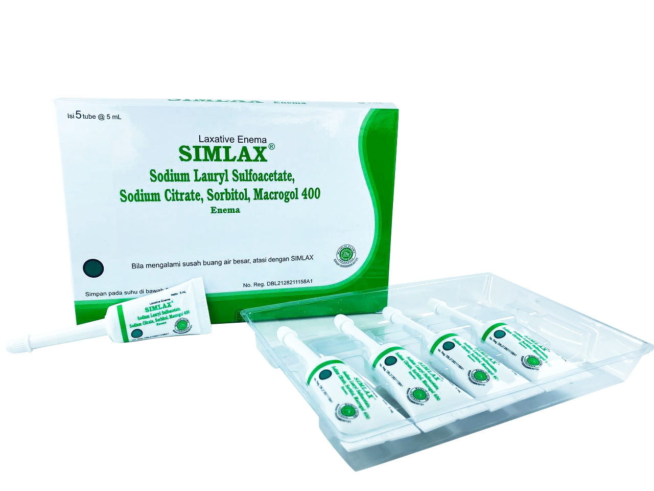 Simlax, a laxative to treat constipation, especially given to patients who have to stay in bed; adults, the elderly, children and pregnant women.